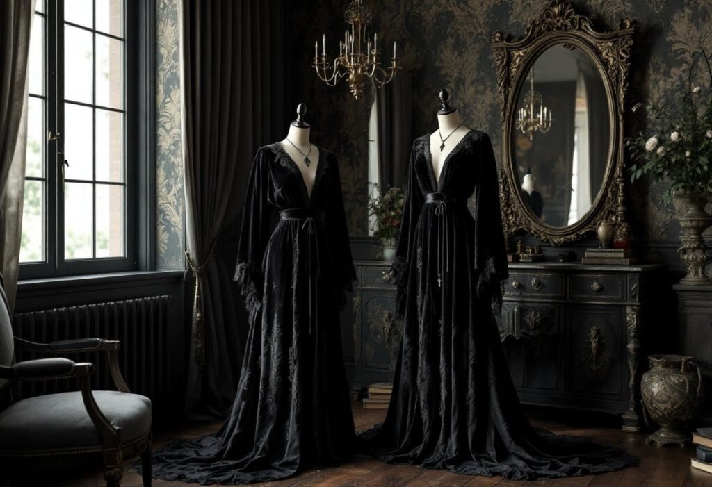 Construire un dressing autour des vêtements gothiques relève autant du choix des pièces que de leur mise en scène. L’inspiration puisée dans l’imaginaire victorien passe avant tout par une sélection rigoureuse de robes gothiques faites de matières riches comme le velours ou la dentelle. Ces tissus rappellent instantanément les salles feutrées des châteaux traditionnels. Les coupes longues, souvent évasées ou cintrées à la taille, évoquent parfaitement l’élégance intemporelle du XIXe siècle et apportent une note romanesque à l’ensemble du dressing.