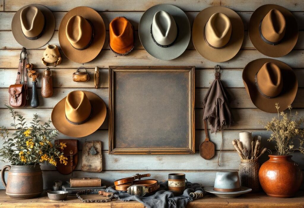 Western chic : créer un mur galerie avec des chapeaux et accessoires de cowboy